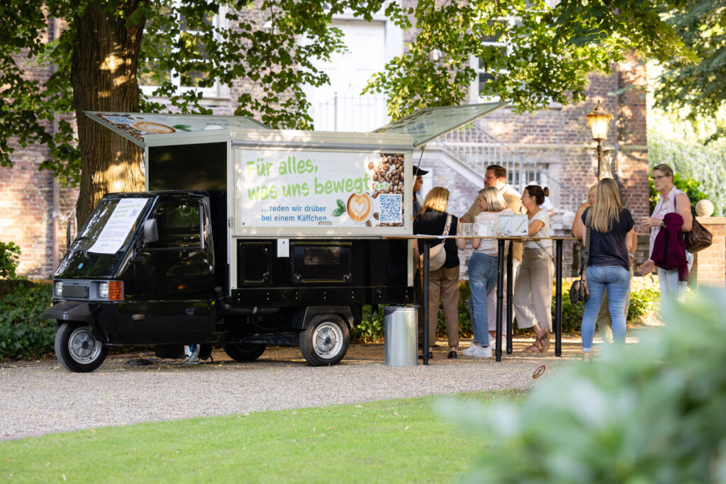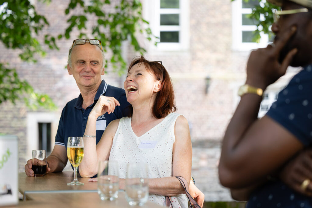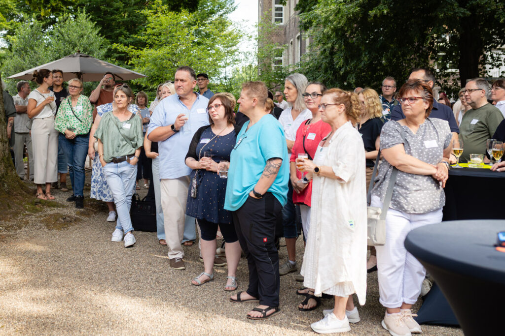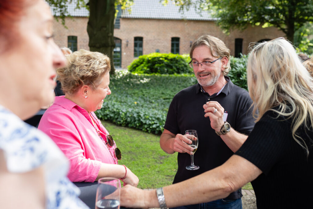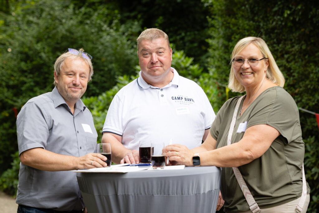 Es gibt Termine im Kalender einer Unternehmensfotografin, die sich weniger nach „Arbeit“ und mehr nach einem Abend unter Freunden anfühlen. Das Kooperations-Partnerfest von FullQuare in Voerde war genau so ein Event. Wenn Grillgeruch in der Luft liegt, die Abendsonne alles in ein warmes Licht taucht und an den Stehtischen gelacht wird, ist das die perfekte Kulisse für authentische Eventfotografie.